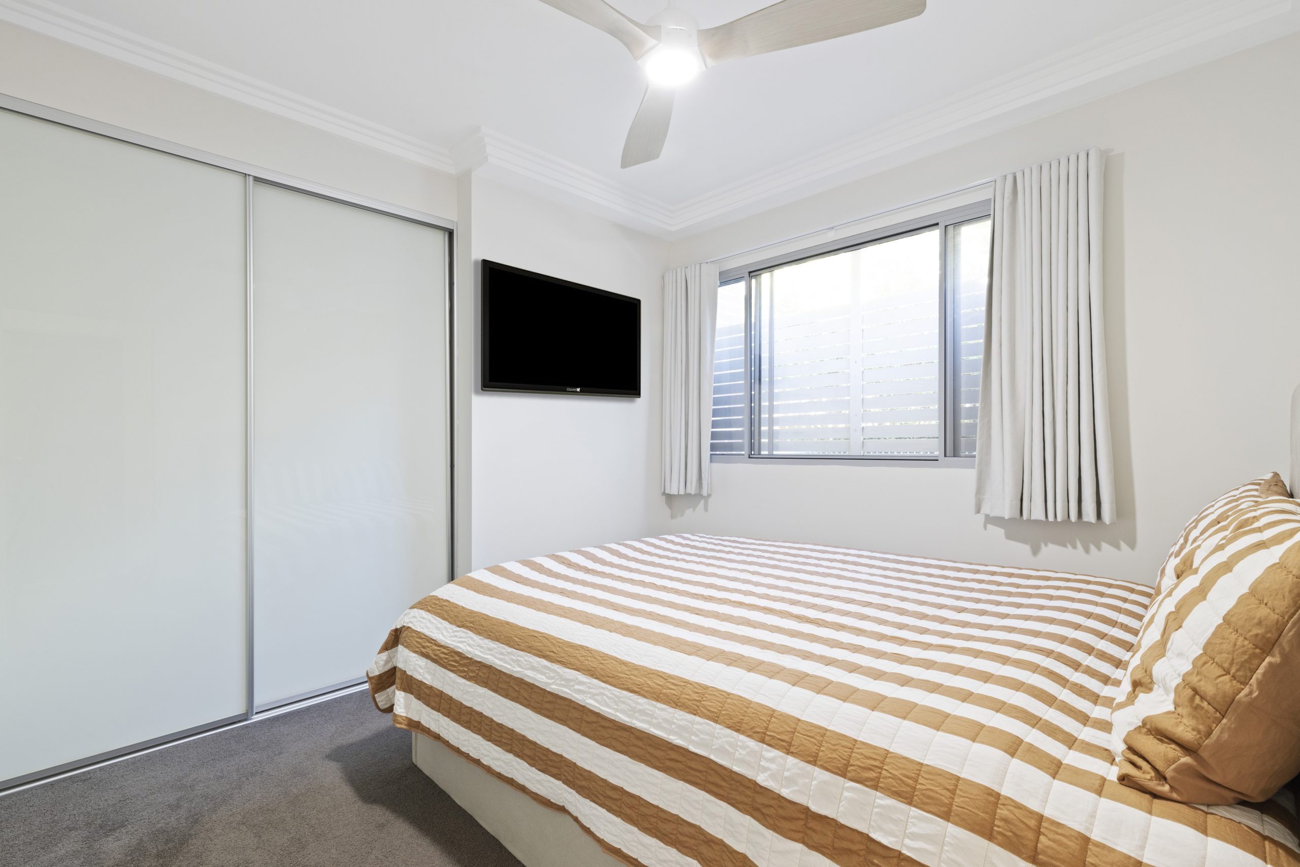 The queen-sized bedroom features a built-in wardrobe, while the apartment is further enhanced by fresh internal paint, ceiling fans and gas heating for year-round comfort. Additional features include an internal laundry, secure basement parking and a storage cage, all within a well-maintained complex built in 2012.